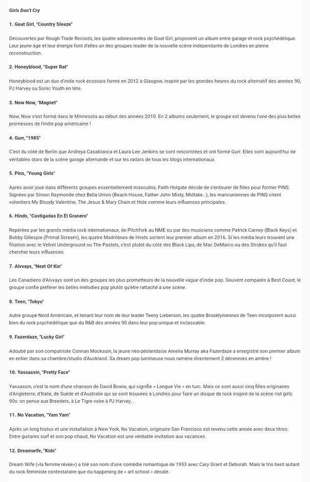 20 octobre 2017 – Sortie de la compilation Girls Don’t Cry