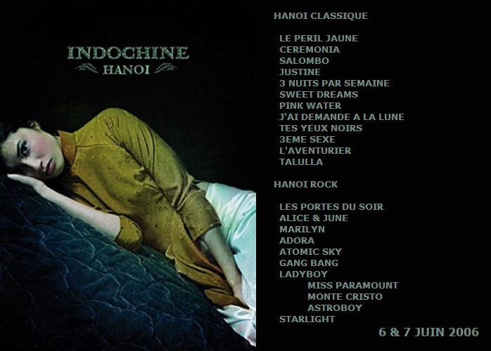 Début 2006. Indochine fait savoir qu’un événement spécial sera organisé pour célébrer les 25 ans du groupe, et en dépit des médias fouineurs et des rumeurs le secret aura été tenu jusqu’au bout ! Et la surprise est de taille quand l’info est révélée au grand jour : Indo relève le pari du concert symphonique, et de surcroît à l’autre bout de la Terre ! C’est à l’opéra de Hanoï, capitale historique du Vietnam, que le groupe se produira aux côtés de l’orchestre symphonique local. Malgré les difficultés logistiques survenues lors de leurs préparations, les deux concerts gratuits donnés le 6 et 7 juin 2006 (initiales 6.6.6) récoltent les honneurs et font l’objet d’une captation live pour un futur DVD, tandis que le groupe repart sur les tours de l’Alice & June Tour.