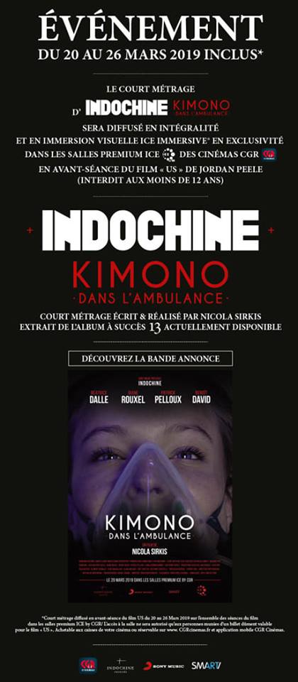 Kimono Dans l’Ambulance a bien un clip, lui, et celui-ci sera bientôt diffusé en salles ! A l’instar de Station 13, le court-métrage de douze minutes déjà disponible sur le DVD de la réédition précédera bientôt le film « US » dans les salles CGR équipées de la technologie ICE (Immersive Cinematique Experience), et ceci du 20 au 26 mars prochain. La réservation se fait ici !