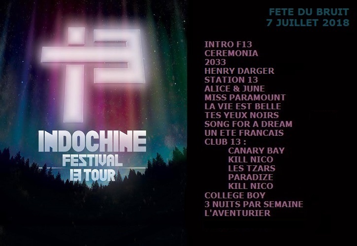 Indo poursuit sa tournée des festivals après une soirée particulièrement chaude à la Fête du bruit de St-Nolff hier. A noter que la setlist a encore été raccourcie faute de temps, quitte à carrément faire l’impasse sur J’ai Demandé à la Lune, absence rare pour être soulignée dans les concerts d’Indo grand public !