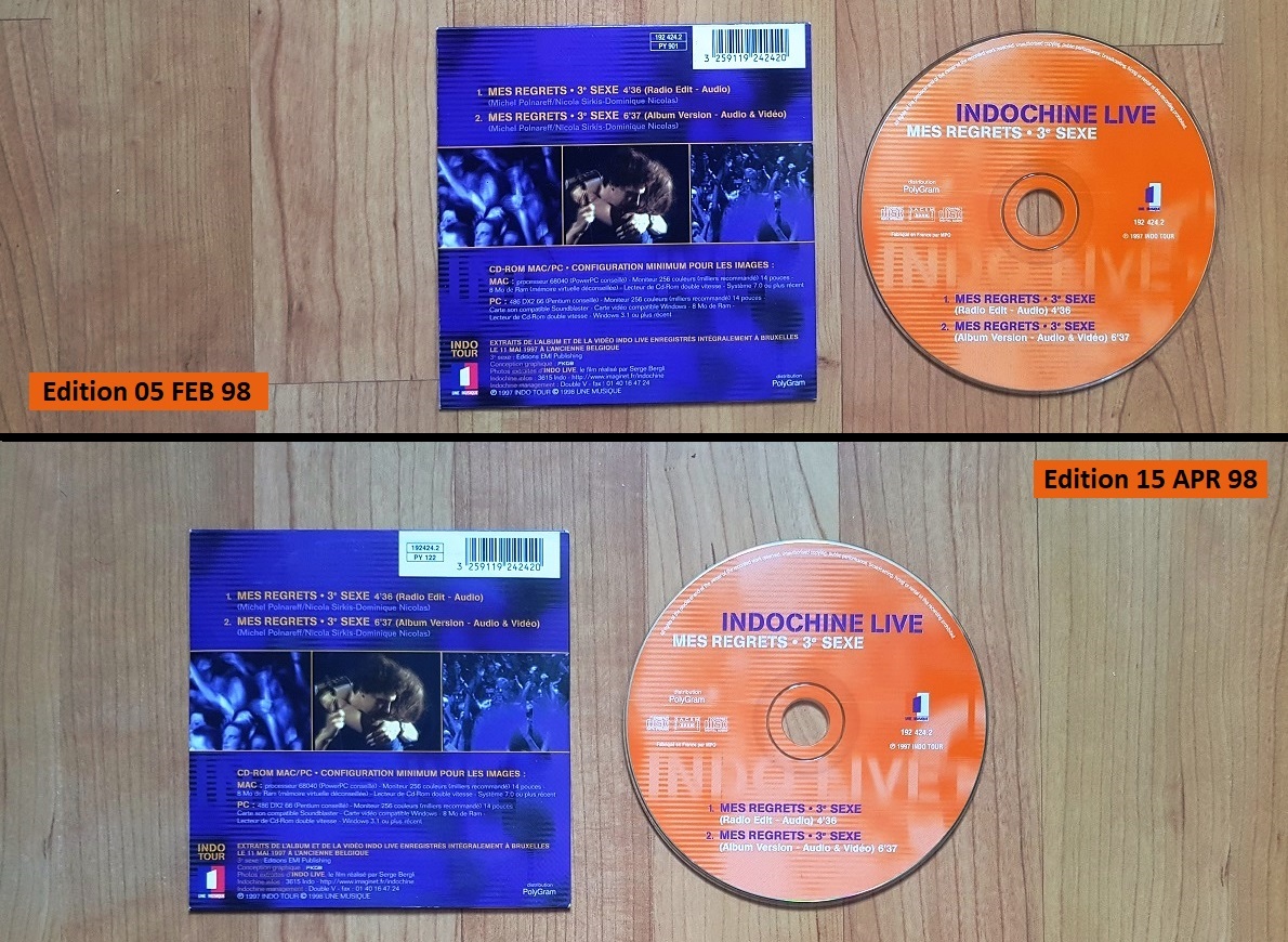 La règle n’échappe cependant pas à ce single live, il demeure un objet rare comme tous les autres issus de la décennie. Deux pressages existent, un premier portant l’identification PY 901 et la date 05 FEB 98 gravé sur le disque. Le second se distingue par le code PY 122, une couleur imprimée sur le disque plus fade et une date ultérieure (15 APR 98). Le plus intéressant n’en demeure pas moins leur point commun : des indications bien marquées dans leur époque, la seconde moitié des années 90, avec la configuration minimale de l’équipement informatique nécessaire pour lire le clip gravé dans un format oublié.