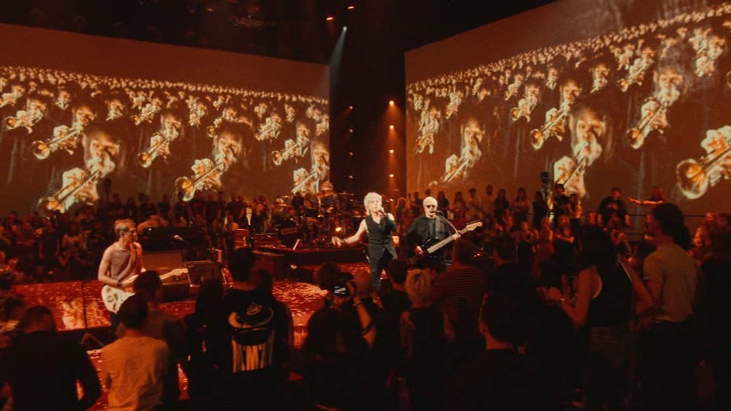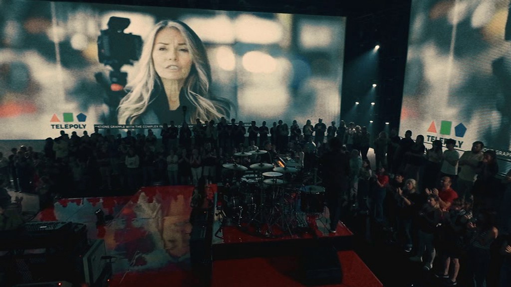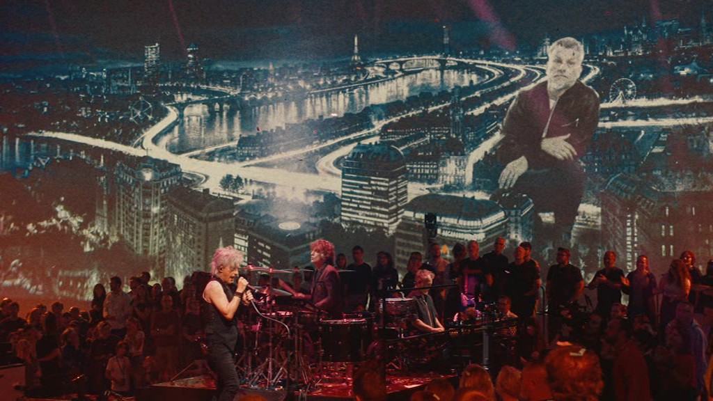 Dix titres sur les dix-sept, ni plus ni moins, pour découvrir non seulement neuf toutes nouvelles chansons (Le Chant des Cygnes étant déjà connu) mais aussi les découvrir dans les conditions de concert, malgré une configuration peu commune où le groupe joue sur une scène tout autour du public, comme un héritage du Central Tour. Mais cette fois, la scène est à hauteur des spectateurs, et surtout, des écrans ont été disposées tout autour de la salle, un par mur, encerclant les gens pour mieux les immerger dans les vidéos dites backdrop. Sans grand étonnement, c’est sur Babel Babel que l’intro se déroule, exploitant l’idée des journaux télévisés rappelant là aussi l’intro de la tournée des stades de 2022, et éparpillant les infos comme autant de langues étrangères pour reprendre le mythe de la Tour de Babel. Sans surprise, le titre up-tempo ouvrant le second disque de l’album fait des merveilles en live, avec une forte présence des guitares comme on aimerait en réentendre plus souvent. Car dès le second titre, L’Amour Fou, on retrouve plutôt le ton festif du 13 Tour et de son 2033 repris presque trait pour trait (gimmick jovial, confettis, couleurs vives), un effet redite qui n’a pour seul effet que de faire contrepoids après le titre d’ouverture. Victoria quant à lui ressemble énormément à sa version album, faisant presque passer le concert pour du playback, et seuls les passages plus calmes donne plus d’authenticité. Qu’importe, la production testostéronée du titre transporte malgré tout et le ton guerrier habité par les jeunes ukrainiennes jouant des cuivres donne une certaine allure à ce passage du concert.