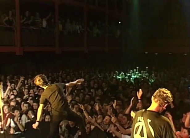 Indo Live revient donc sur une date bruxelloise du Wax Tour, dans une salle à la dimension représentative des concerts de l’époque. L’Ancienne Belgique n’est en effet pas bien grande et la scène est plutôt basique, aux jeux de lumières limités, ce qui permet néanmoins de montrer aux générations ultérieures un concert d’Indo dans son jus de l’époque, tout en simplicité. Et de faire entendre des chansons que le groupe ne jouera plus avant très longtemps comme Mire-Live, précédée d’une intro issue du film de Tim Burton : Edward aux Mains d’Argent. Les douces premières secondes de la chanson sont parfaites pour commencer le concert, mais il faut vite Unisexe pour faire bouger les foules ! Dommage qu’un aussi bon titre pop-rock ne soit pas joué plus souvent dans les concerts récents, à l’inverse de l’intemporel 3 Nuits par Semaine. Ce dernier se voit transfiguré depuis la tournée précédente, où le synthé laisse peu à peu la place aux guitares pour un résultat plus brut et énergique. Pour revenir sur les raretés, la chanson issue de l’album précédent La Main sur Vous, et le très aimé des fans Echo-Ruby font plaisir à entendre. Idem pour Les Silences de Juliette, là encore un titre qui ne passera pas le cas de la tournée, déjà mise au placard à partir de Dancetaria.