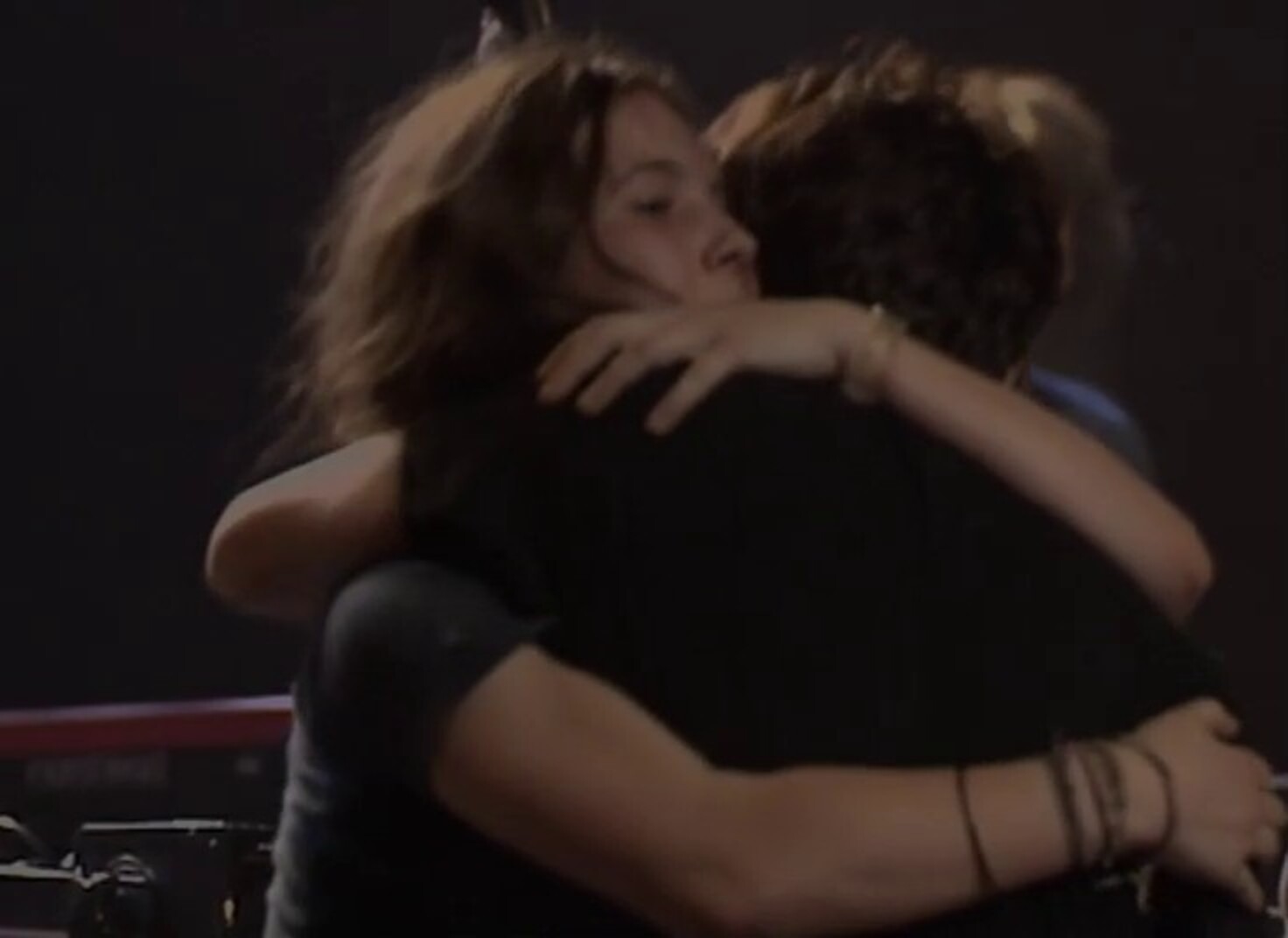 Indo Live revient donc sur une date bruxelloise du Wax Tour, dans une salle à la dimension représentative des concerts de l’époque. L’Ancienne Belgique n’est en effet pas bien grande et la scène est plutôt basique, aux jeux de lumières limités, ce qui permet néanmoins de montrer aux générations ultérieures un concert d’Indo dans son jus de l’époque, tout en simplicité. Et de faire entendre des chansons que le groupe ne jouera plus avant très longtemps comme Mire-Live, précédée d’une intro issue du film de Tim Burton : Edward aux Mains d’Argent. Les douces premières secondes de la chanson sont parfaites pour commencer le concert, mais il faut vite Unisexe pour faire bouger les foules ! Dommage qu’un aussi bon titre pop-rock ne soit pas joué plus souvent dans les concerts récents, à l’inverse de l’intemporel 3 Nuits par Semaine. Ce dernier se voit transfiguré depuis la tournée précédente, où le synthé laisse peu à peu la place aux guitares pour un résultat plus brut et énergique. Pour revenir sur les raretés, la chanson issue de l’album précédent La Main sur Vous, et le très aimé des fans Echo-Ruby font plaisir à entendre. Idem pour Les Silences de Juliette, là encore un titre qui ne passera pas le cas de la tournée, déjà mise au placard à partir de Dancetaria.